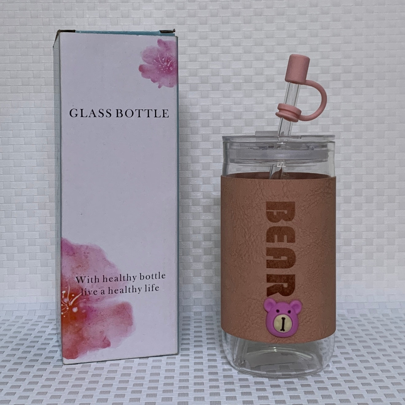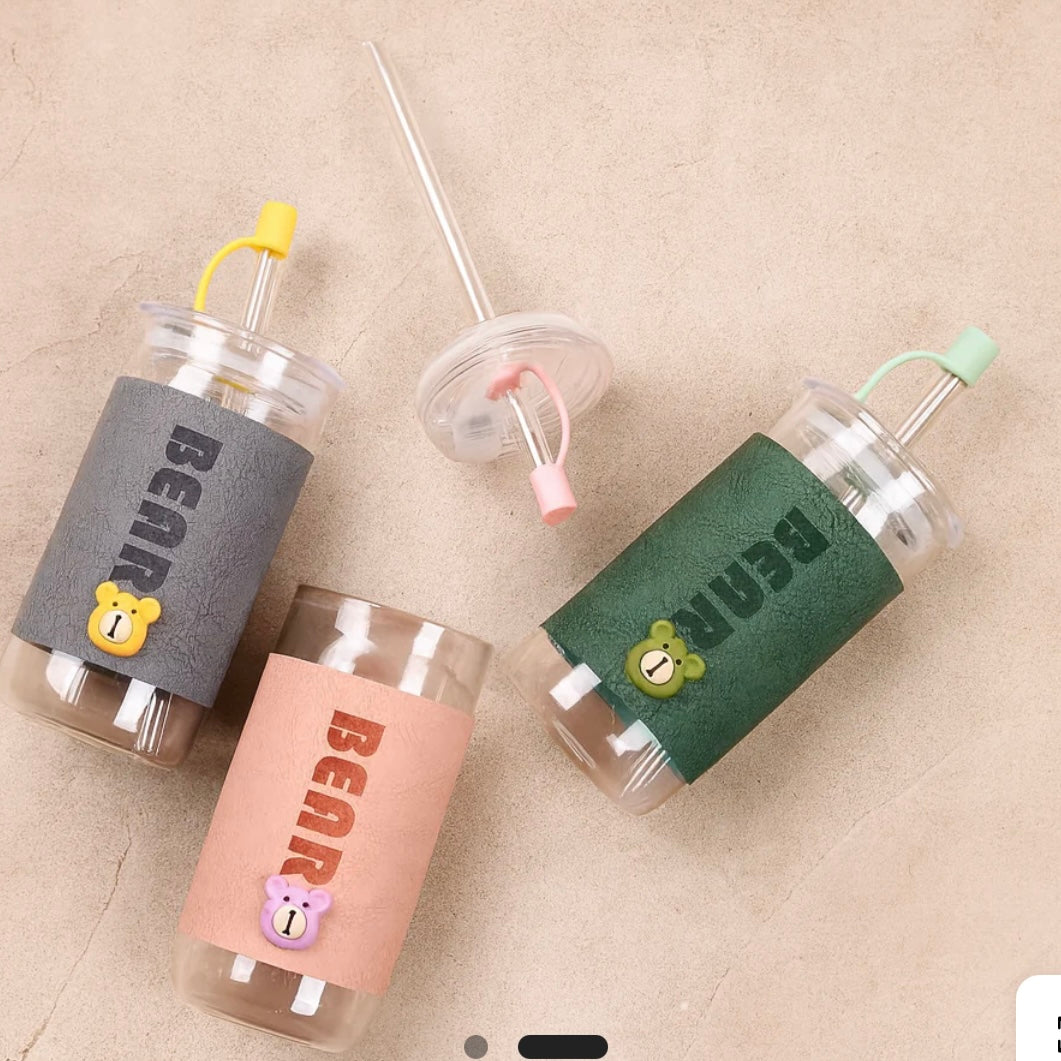This adorable tumbler features a premium textured leather sleeve with an embossed BEAR text and a matching 3D bear emblem. Paired with a reusable glass straw and airtight lid, it’s the perfect mix of cuteness and practicality.