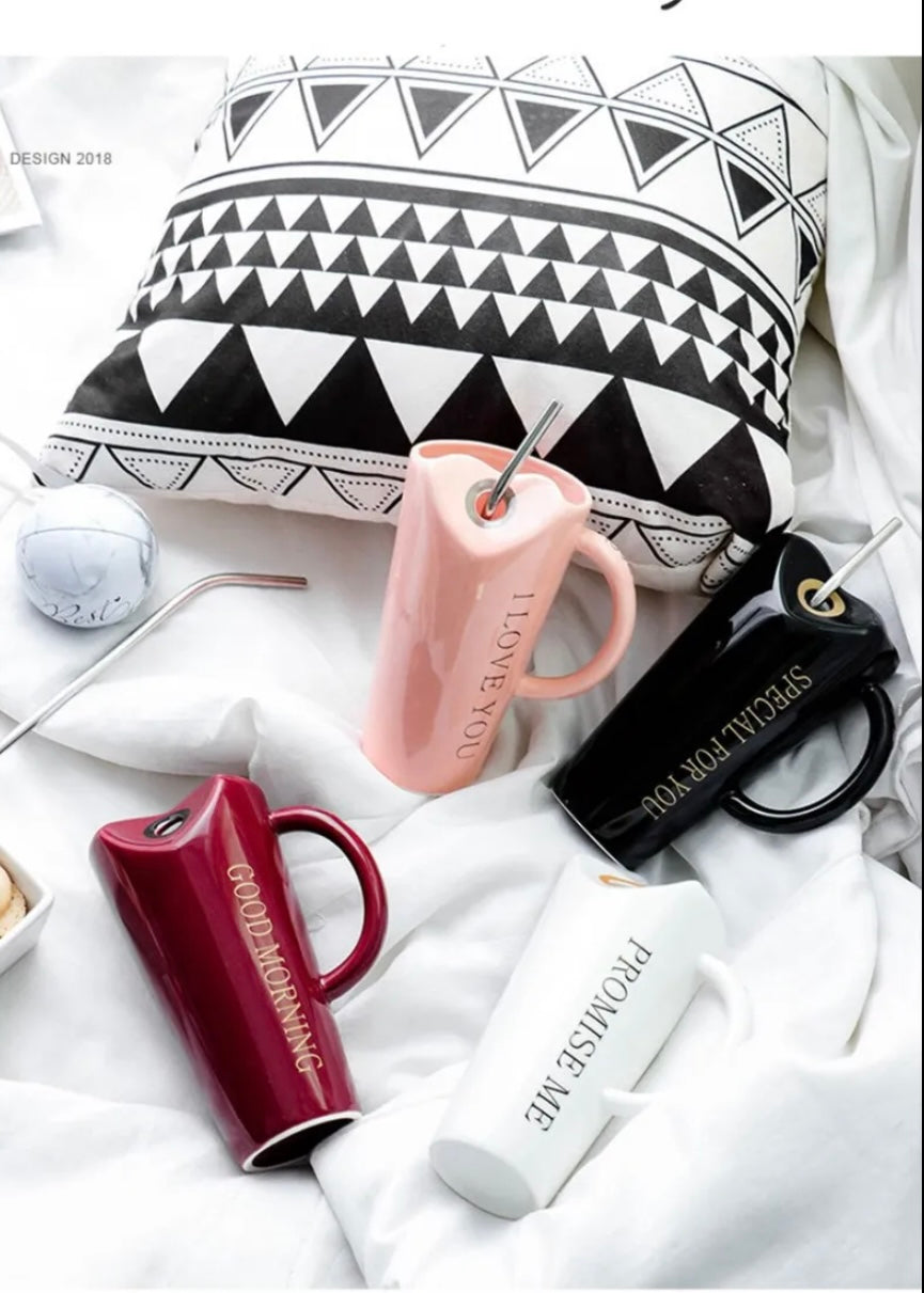 Tea Coffee Mugs for Boys Grils Stylish Coffee Mugs For Couple With Reuseable Straw