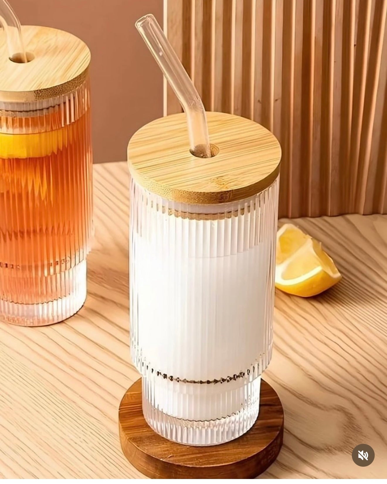 Ribbed Glass Tumbler with Handle, Straw & Bamboo Lid – 620ml